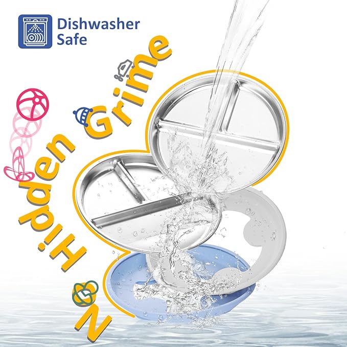 - Safe & Pure Stainless Steel: The smooth, BPA-free, lead-free stainless steel surface of these kids plates doesnβt absorb oils, soap, or odorsβsolving common issues with traditional baby suction plates. Enjoy fresh, natural-tasting meals every time