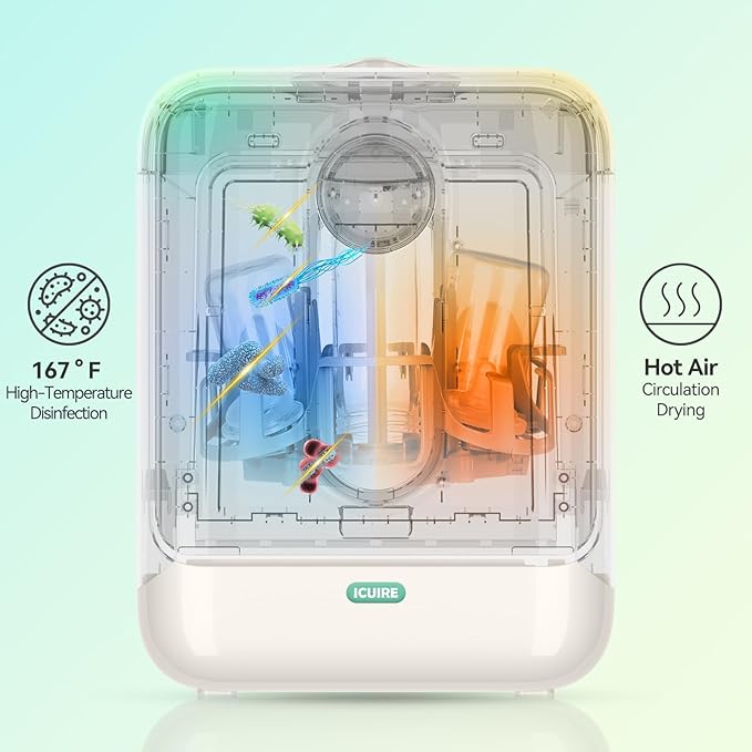 - Efficient high-temperature drying+interval disinfection: Keep bottles dry and long term interval disinfection in the bottle washer for up to 72 hours after washing, removing 99.9% airborne particles.
