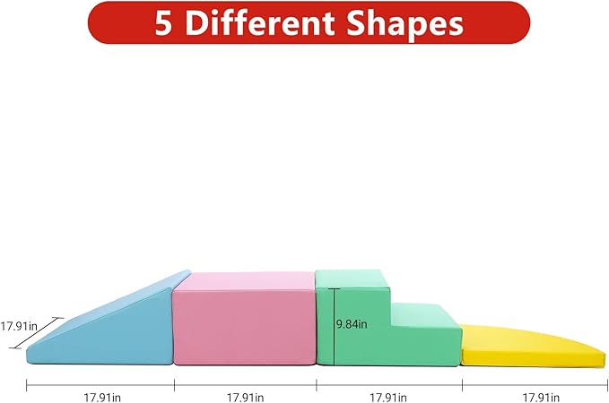Safe Materials: Made of child-safe materials, the 4-piece baby foam play set enables your toddler to safely learn to climb, crawl, and slide. It is very suitable for creating a safe play area for toddlers