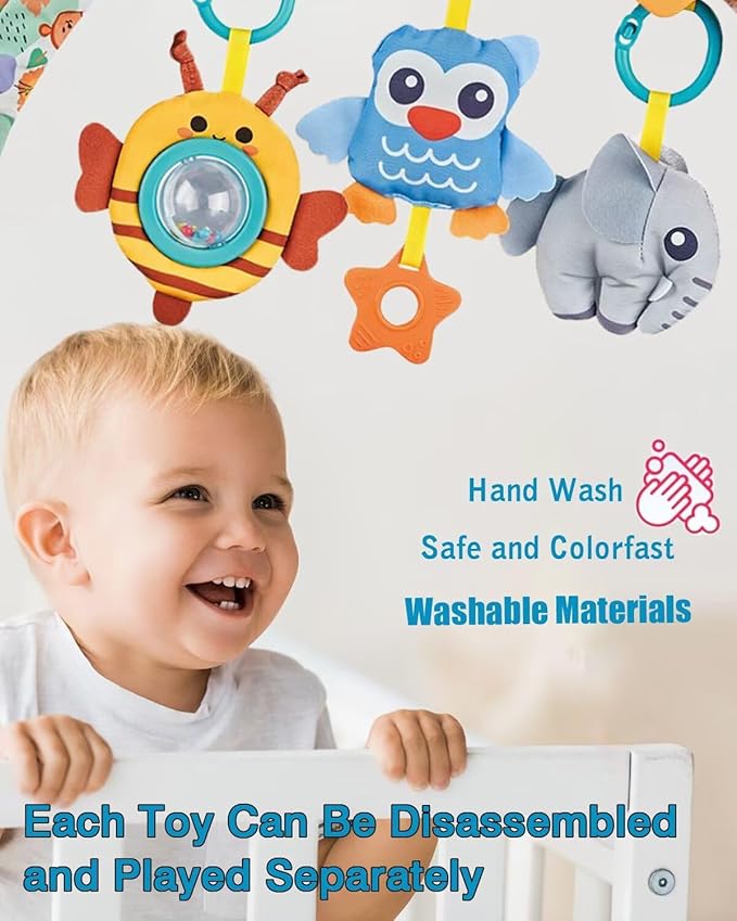 Car seat toys,It is an early development toy.crib toys hanging made of washable materials.Each stroller toy can be detachable dsassembled and played separately.