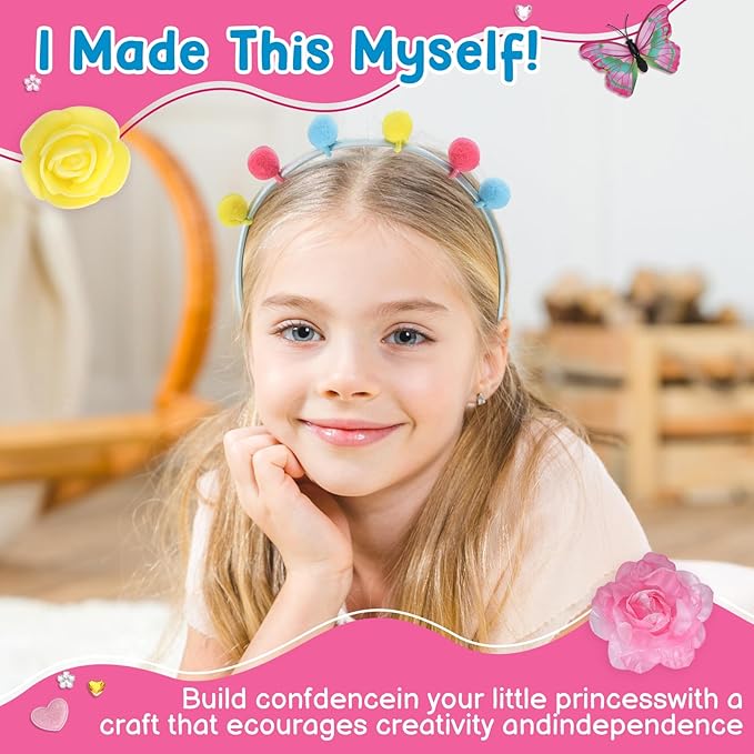 - Promotes Creative Confidence & SkillThis hands-on activity is more than just fun; it nurtures fine motor skills, artistic expression, and the pride of creating something beautiful. Watch her confidence grow with each headband she designs herself.