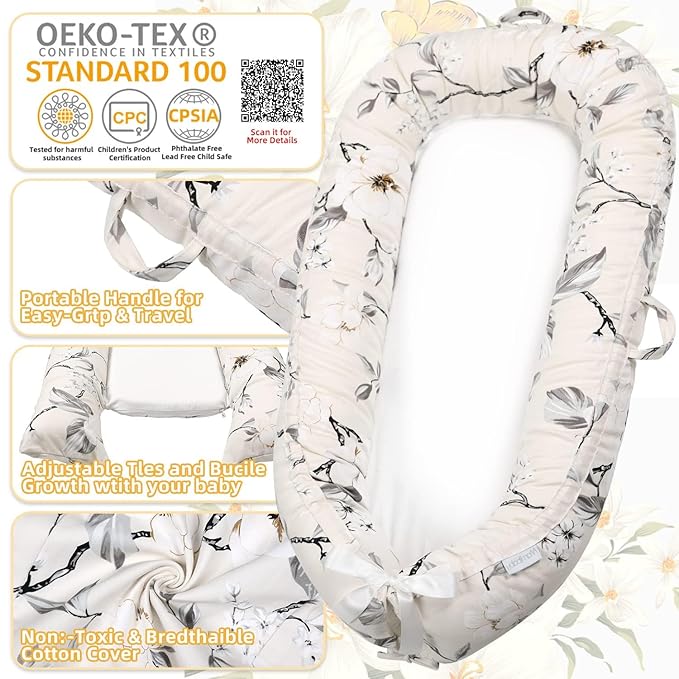 ✅ Lightweight & Travel-Friendly – Compact and portable with convenient carry handles, this baby nest is easy to take with you wherever you go—great for around the house or weekend visits to family.