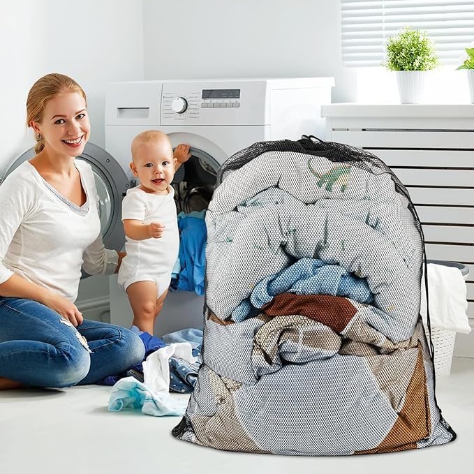 - 【Extra Large Mesh Laundry Bag for Camping and Travel】- Oversized 24" x 36" heavy-duty mesh bag designed to hold large loads of dirty clothes, sleeping bags, blankets, and gear. Perfect for camping trips, dorm rooms, and travel, offering ample space and easy storage.