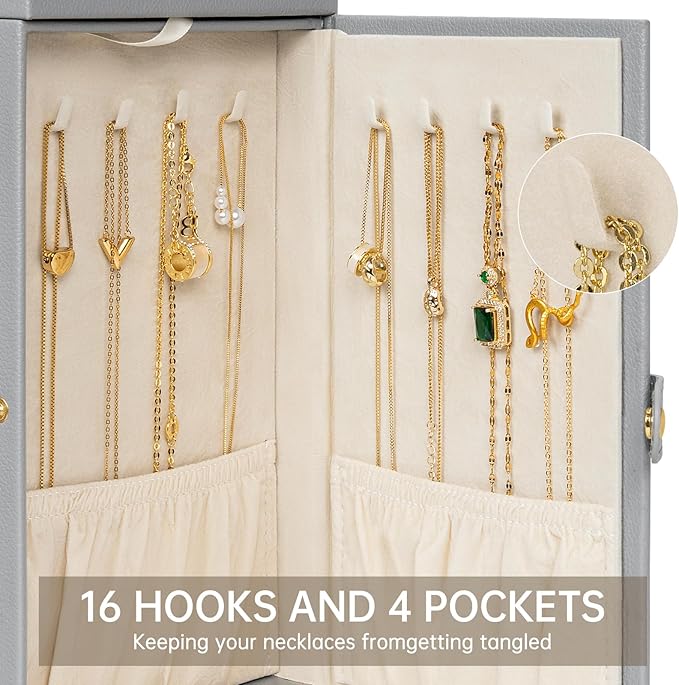 AKOZLIN 6-Tier Jewelry Box Organizer Functional 5 Drawers Leather Jewelry Storage Case for Women Girls Ring Necklace Earring Bracelet Holder Organizer with Mirror Grey