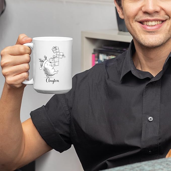 Hedgehog White Ceramic Coffee Mug, Personalized Hedgehog Accent Coffee Cup Gift For Dad Mom Daughter Son Kids, Funny Animal Travel Mug 11 Oz 15 Oz, Custom Name Hedgehogs Teacup Gift For Birthday Xmas