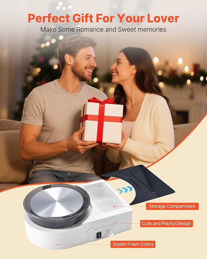 - A Fun Gift Idea: With a clean, playful design and stylish color scheme, this pottery wheel kit makes every project more delightful. The smart built-in storage keeps your tools organized and your workspace tidy—an unforgettable gift for couples