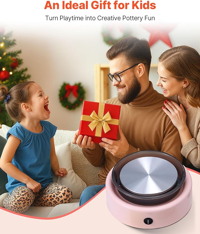 - Mini Pottery Wheel for Kids: This portable mini pottery wheel features a powerful 30W motor and a sturdy 6 in aluminum turntable. It encourages creativity, imagination, and hands-on skills while enhancing parent-child bonding through artistic fun