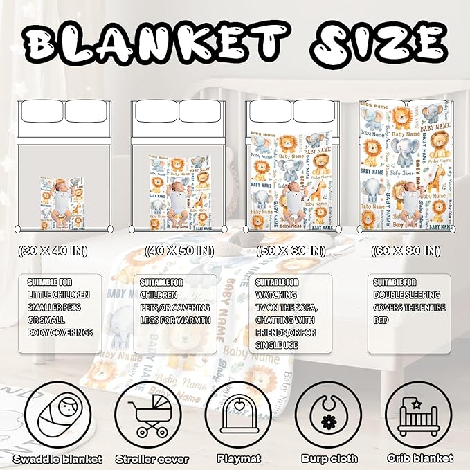 - Custom Baby Gifts Your Family Will Cherish -- Imagine the delight when parents unwrap this personalized baby blanket with name printed just for their little one. Ideal for newborns, toddlers, or kids, this blanket becomes a sentimental heirloom they’ll treasure. Click “Customize Now” and easily enter the name to create a unique custom baby blanket - the ultimate baby shower gift or birthday gift for baby girls or boys.
