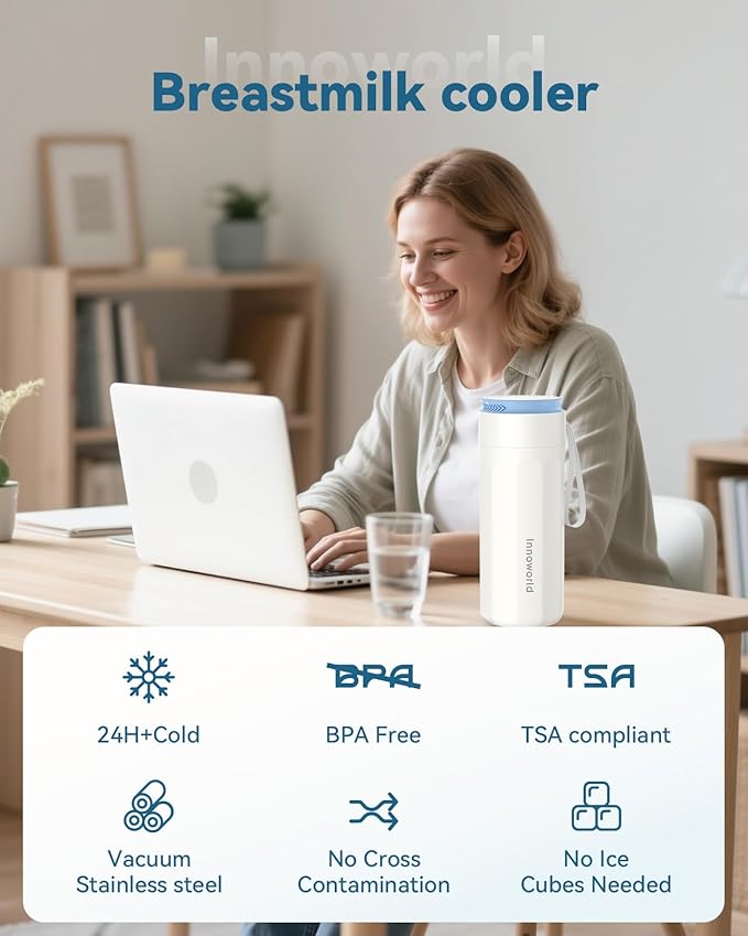 - Travel-Friendly&TSA-Compliant: Stress-Free Travel-The Innoworld breast milk cooler bottle meets TSA guidelines, making airport security checks smooth and worry-free. Whether you're out commuting or working, keep breast milk safely chilled without hassle. Compact, secure, so you can nourish your baby anytime, anywhere.
