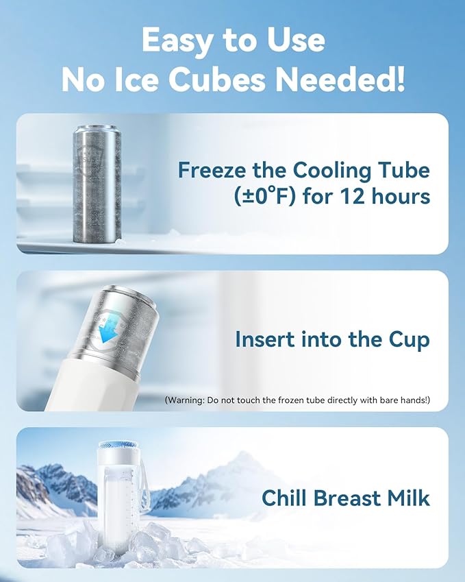 - Easy to Use-No Ice Cubes Needed! 【1】Freeze the Cooling Tube-Place the Innoworld 360° stainless steel cooling tube in your freezer (±0°F) for 12 hours.【2】Insert into the Cup-Carefully transfer the frozen cooling tube into the vacuum-insulated cup body. (Warning: Do not touch the frozen tube directly with bare hands!)【3】Chill Breast Milk -Place your breast milk storage bottle inside the cooling tube, and enjoy 24+ hours of safe, ice-free cooling!