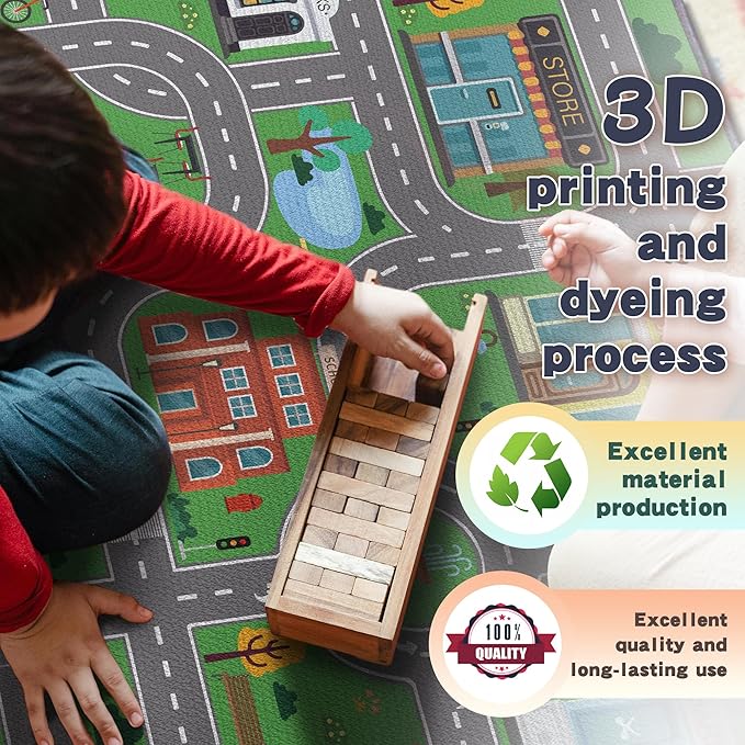 - Detailed & Recognizable Scenes:Our carpet includes facilities such as a bakery, bookstore, department store, pharmacy, supermarket, hair salon, and school, allowing children to enjoy having a city of their own that they can control.