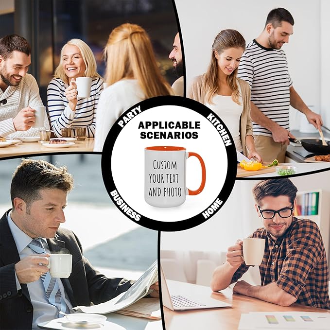 Custom Mug Upload Your Picture Personalized Coffee Mug with Photo Text Name Customized Cup Unique Ideas Gifts for Men Women Mom Dad Girlfriend Boyfriend Friend Family (Orange, 15oz)