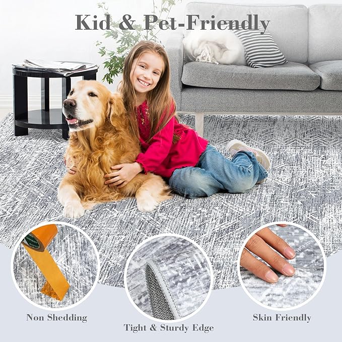 [Secure Non-Slip Backing]: Equipped with a TPR non-slip backing, this area rug stays securely in place on any surface, reducing slips and making it especially safe for families with kids and pets