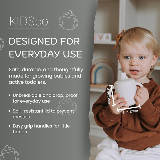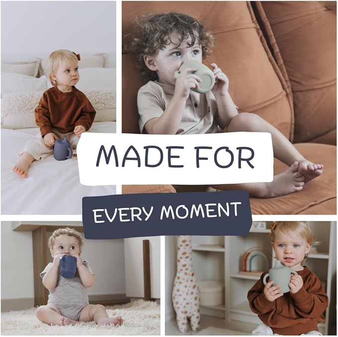 - UNBREAKABLE: The easy-grip, non-slip material makes the perfect cup for babies 6+ months and toddlers 1-3 years old. The silicone material will not break or crack when dropped by your little ones. The double handles also make it easier for babies and toddlers to hold and reduces the potential for spills. The transition cup can also be used without the lid as an open kids cup or as a toddler snack container.