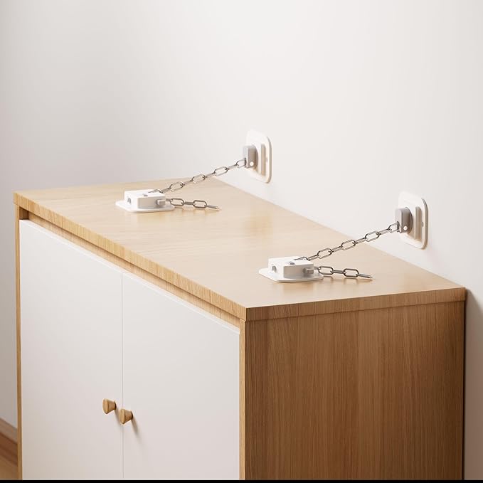 COMPLETE KIT: Includes all necessary components - adhesive mounting plates, metal chains, and installation hardware for multiple furniture pieces