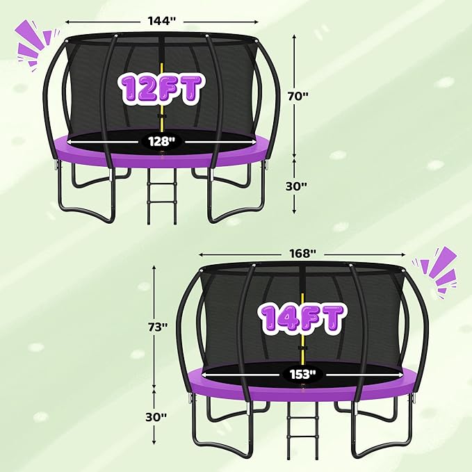 - 【Sturdy and Durable】Turn your yard into an amusement park-instantly! All steel frames are made of high-strength galvanized steel pipes, with anti rust coating treatment. The fence is also covered with waterproof thick foam, which can still be new after a period of use. The JELENS outdoor trampoline comes in a variety of sizes and colors for children to choose from, making it a stage in the air where pure joy can bloom freely during jumping!