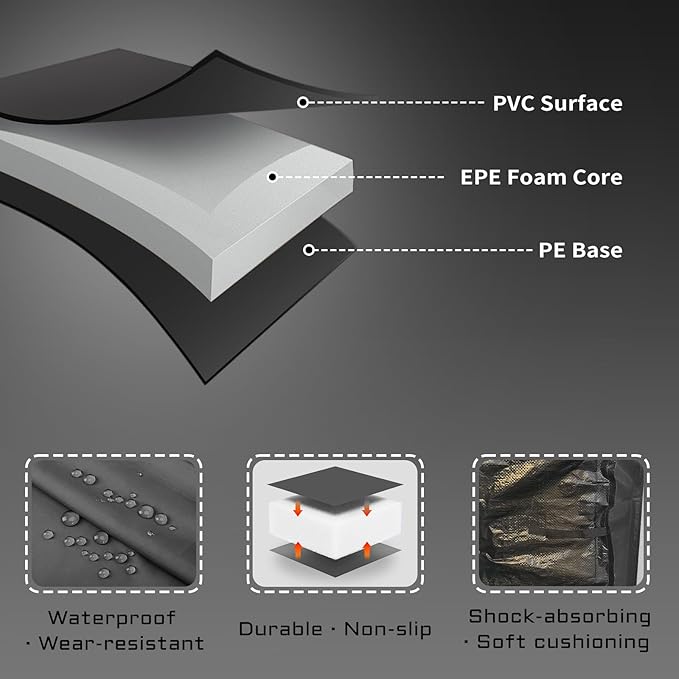 【PREMIUM MATERIAL】The outer layer shell is manufactured with high density PVC on top and heavy-duty PE on the bottom, 0.6 inch high-density EPE foam inside