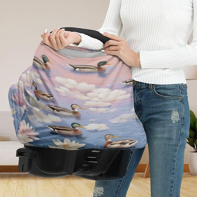 Binienty Baby Car Seat Cover - Lotus Duck Animal Print Multi-Use Car Seat Canopy Carrier Cover for Baby Boys Girls Shower Gifts